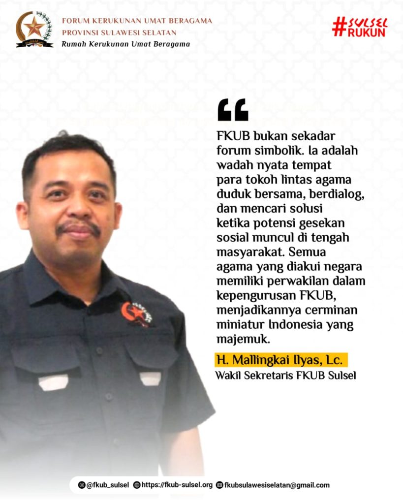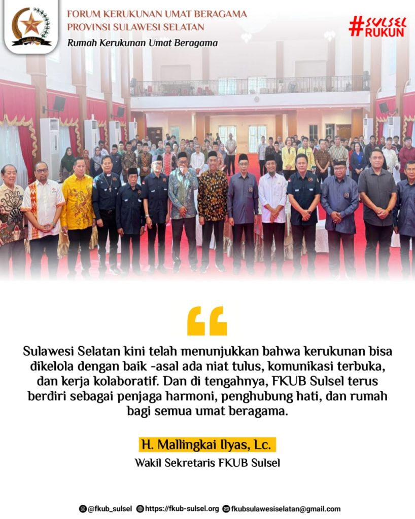 Sulawesi Selatan dikenal sebagai salah satu provinsi dengan tingkat kerukunan umat beragama tinggi di Indonesia. Di balik capaian itu, ada kerja panjang, tenang, dan konsisten dari sebuah lembaga yang menjadi rumah bersama bagi semua pemeluk agama, Forum Kerukunan Umat Beragama (FKUB) Sulawesi Selatan.