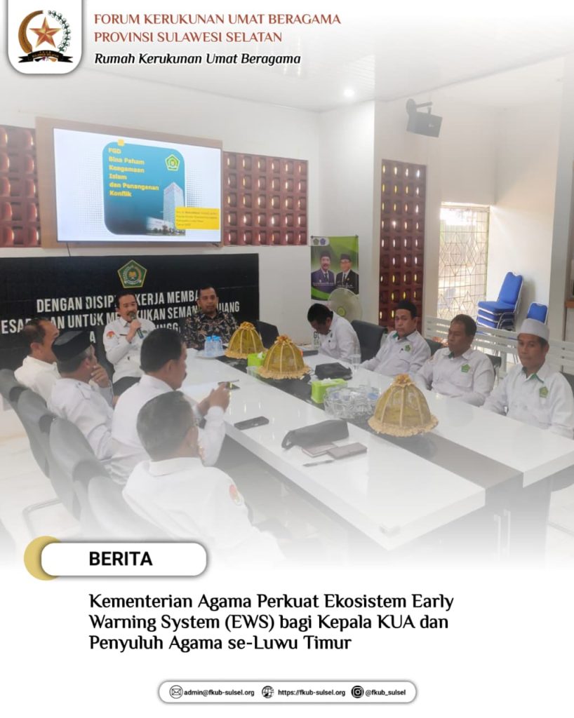 Sebelumnya, Kepala Kantor Kemenag Kabupaten Luwu Timur, H. Muhammad Yunus, dalam sambutannya menekankan bahwa penerapan EWS adalah strategi preventif menjaga keharmonisan sosial-keagamaan.